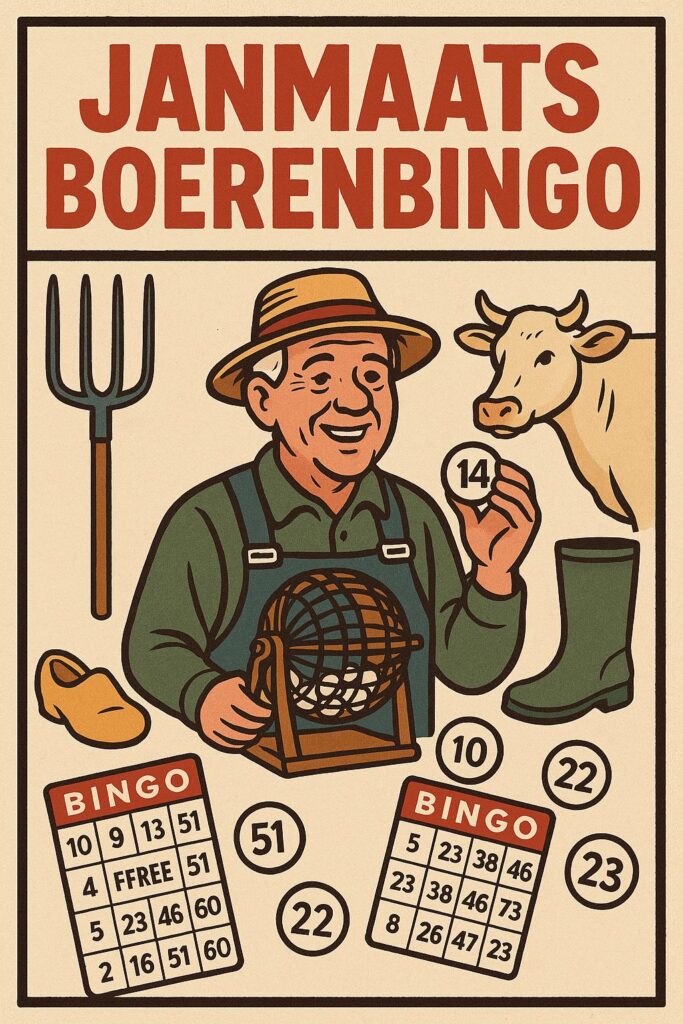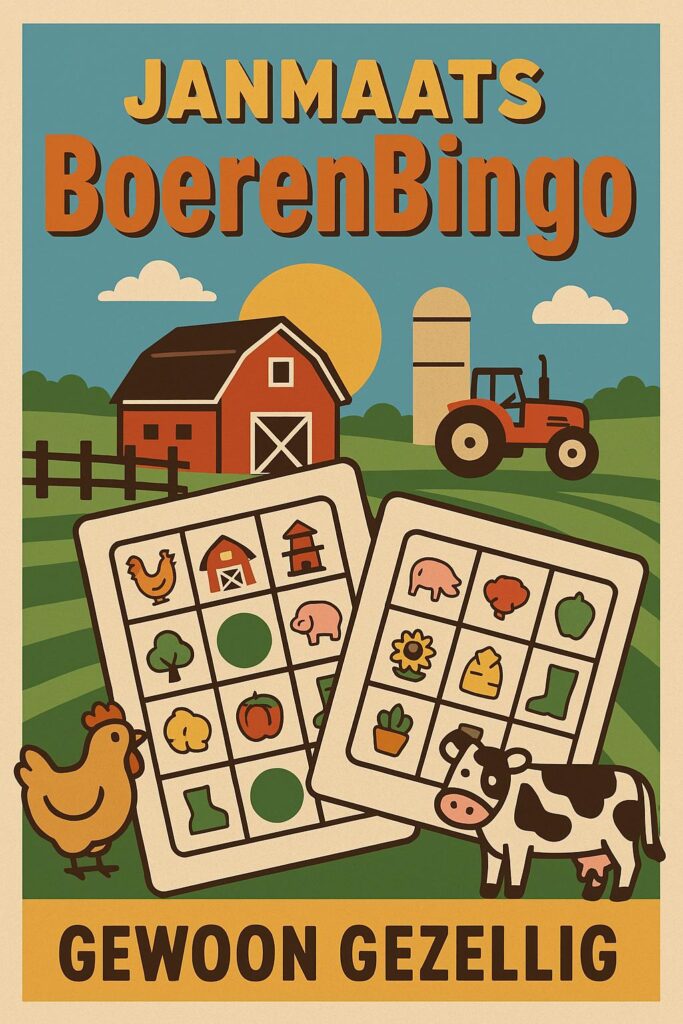 Ouderwetse bingo, maar dan nét even anders. Geen cijfers, maar gezellige boerenplaatjes op je kaart! Van klompen tot koeien, van hooiberg tot melkbus!