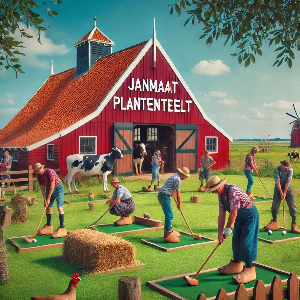Welkom bij het gezelligste golfspel op z’n boerenfluitjes! Bij Boer Janmaat Golf geen strak gemaaide greens of dure clubs, maar klompen aan een stok, een bal zo groot als een kool, en een parcours dwars door het perceel. Sla je bal langs de bieten, door het graan, langs de pluktuin en over hindernissen! En wie weet kom je onderweg boer Janmaat nog wel tegen!