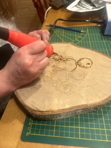 Workshop houtbranden: € 27,50 per persoon (Ronde houtschijf, rechthoekige plank of kleine snijplank)